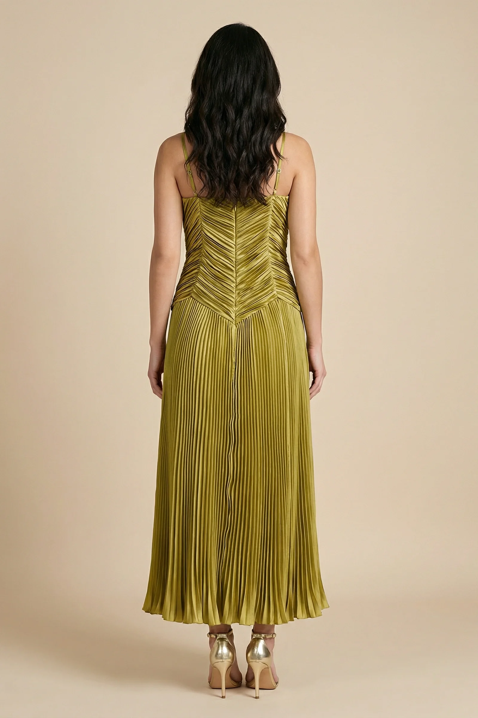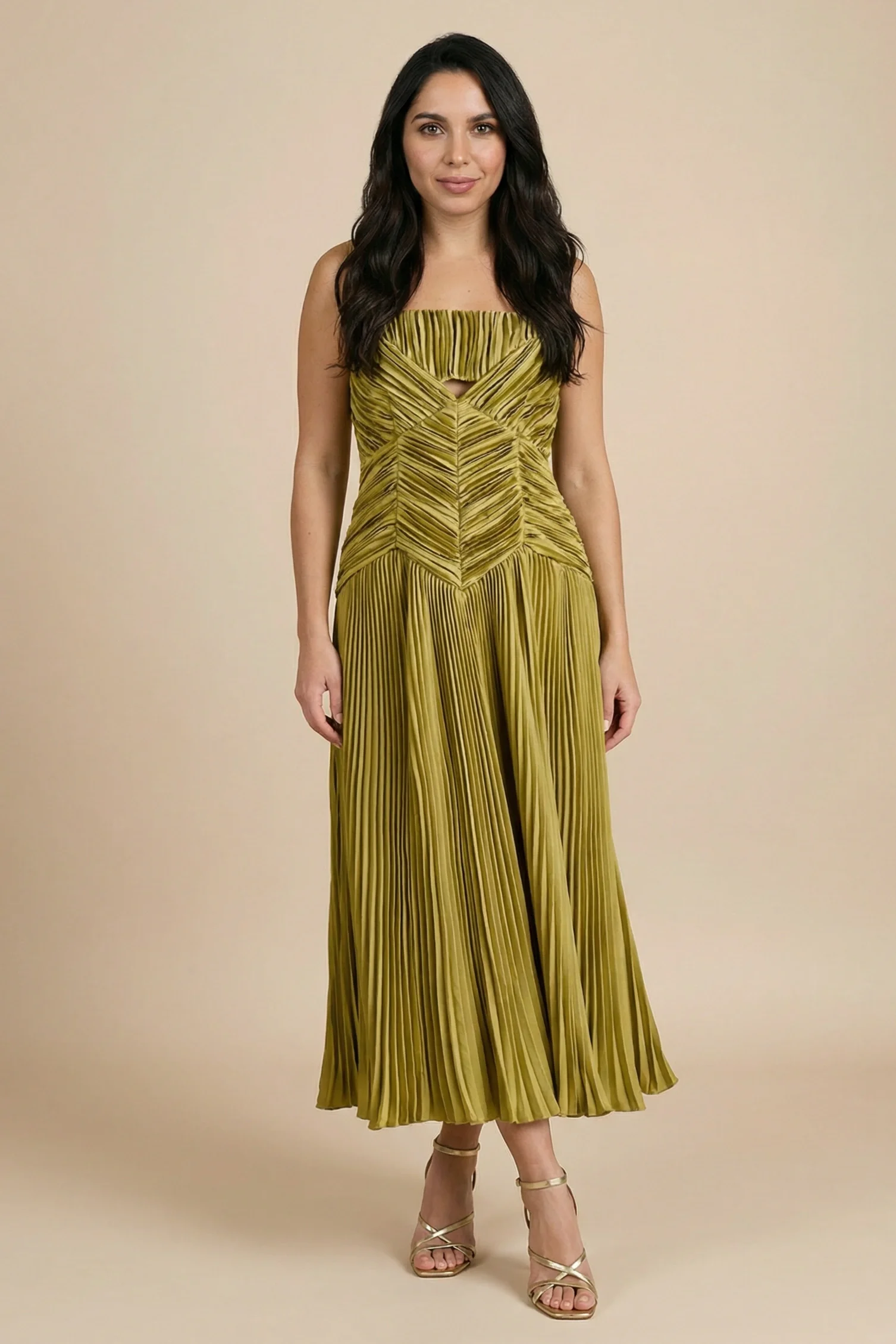 Λεπτομέρειες: Πλισέ φούστα με ρευστή κίνηση και σχέδιο chevron στο μπούστο